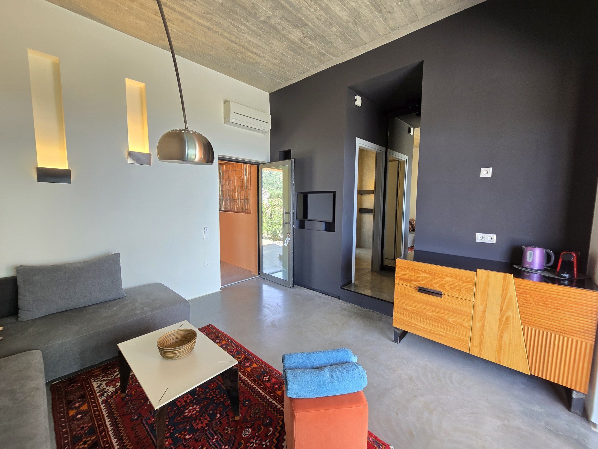 A rare investment opportunity in Southern Crete: a recently built, fully licensed tourist complex located just outside the charming village of Sellia and only 2 km from the pristine beach of Souda. Set within a stunning 10,000 m² plot of natural rocky terrain and landscaped gardens, this unique complex offers complete privacy along with breathtaking sea and mountain views.