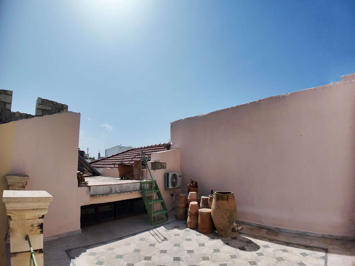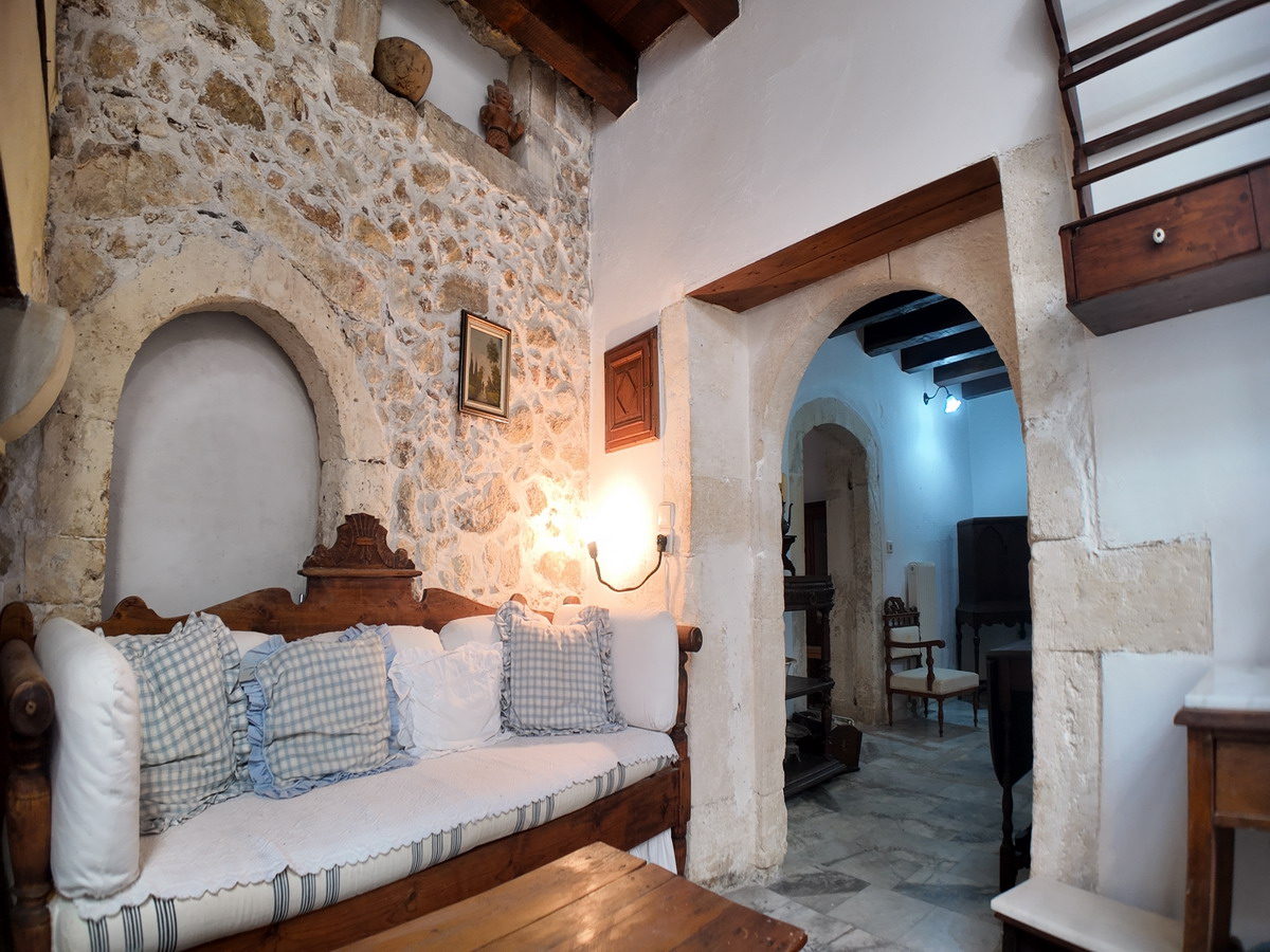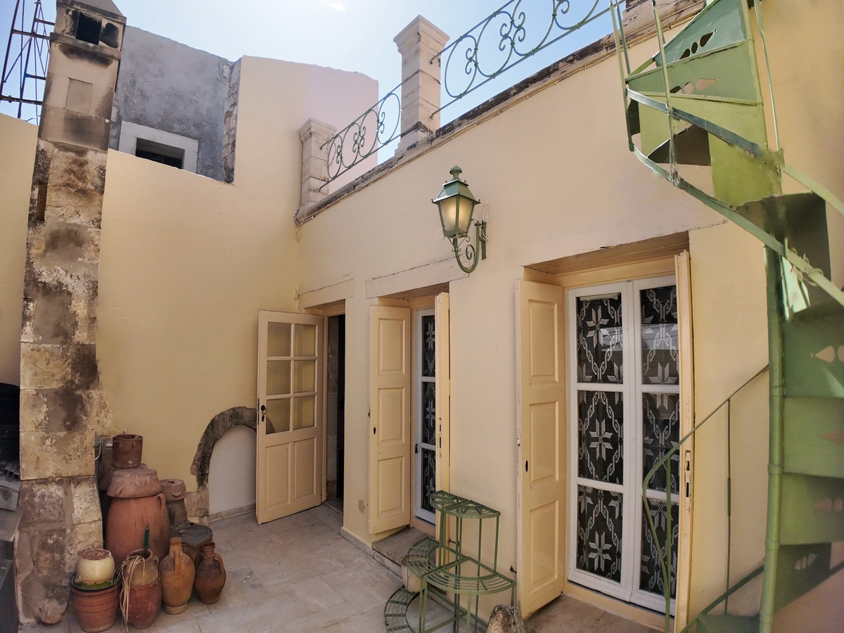 In the heart of Rethymno’s historic old town, at 51 Patelarou Street, lies a stunning Venetian stone-built townhouse, rich in architectural character. The entrance hallway features a beautiful inlaid marble star on the floor, adding a touch of discreet elegance.