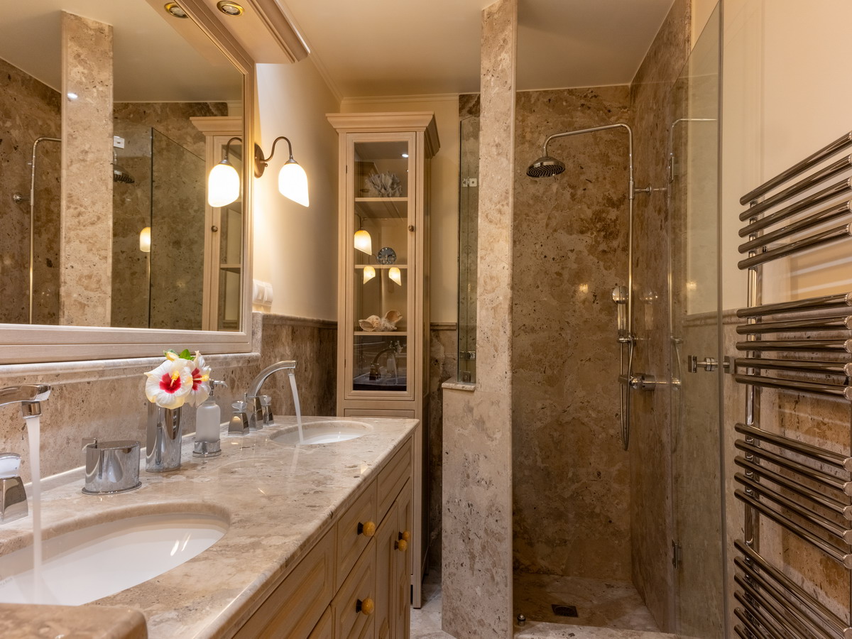 The property sits on a beautifully landscaped 2,500 m2 plot, surrounded by Mediterranean gardens and stunning natural scenery.
