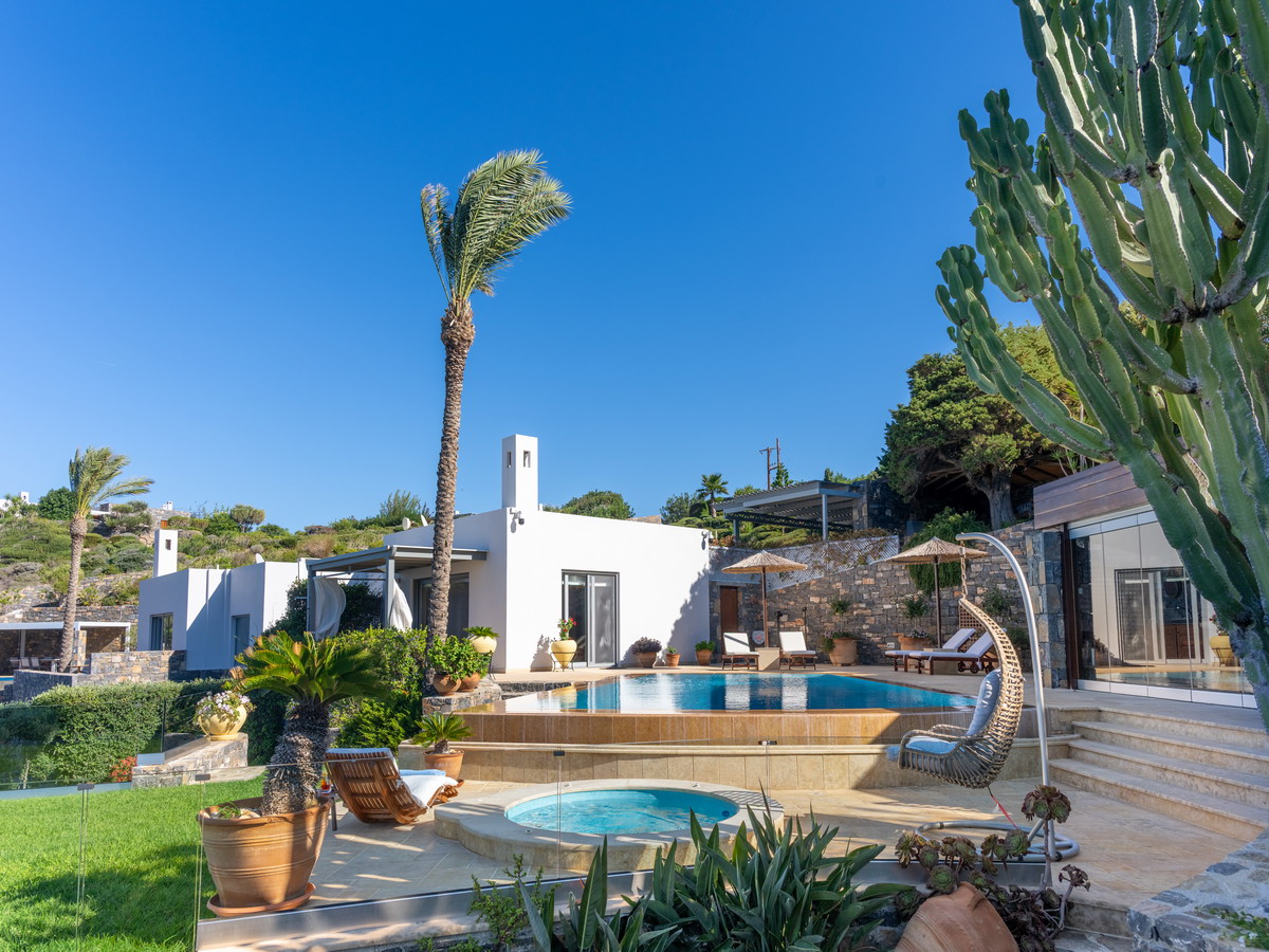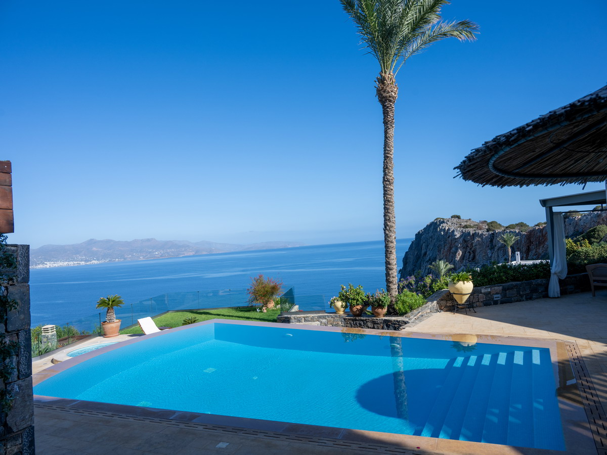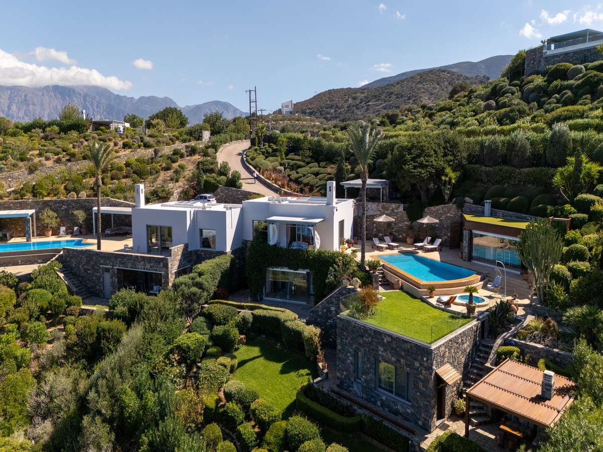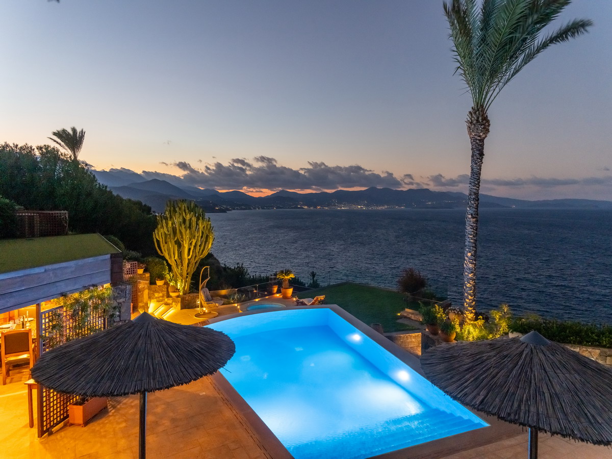 Elegant designer Villa Paradise is located in an exclusive seaside complex on the rocky shores of the magnificent Mirabello Bay, just 15 km from Agios Nikolaos and 70 km from Heraklion.